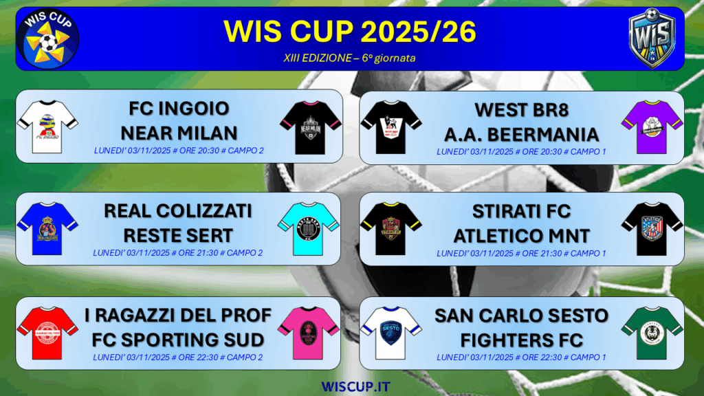 E siamo giunti alla VI giornata della WIS CUP 2025/26, con altri 2 match già fondamentali per il proseguo del campionato.