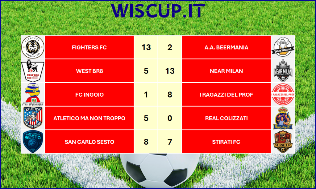 Classifica Gruppo A: ATLETICO MA NON TROPPO 9 (3 # +11) – NEAR MILAN 6 (3 # +12) – WEST BR8 3 (3 # -8) – REAL COLIZZATI 0 (3 # -15)